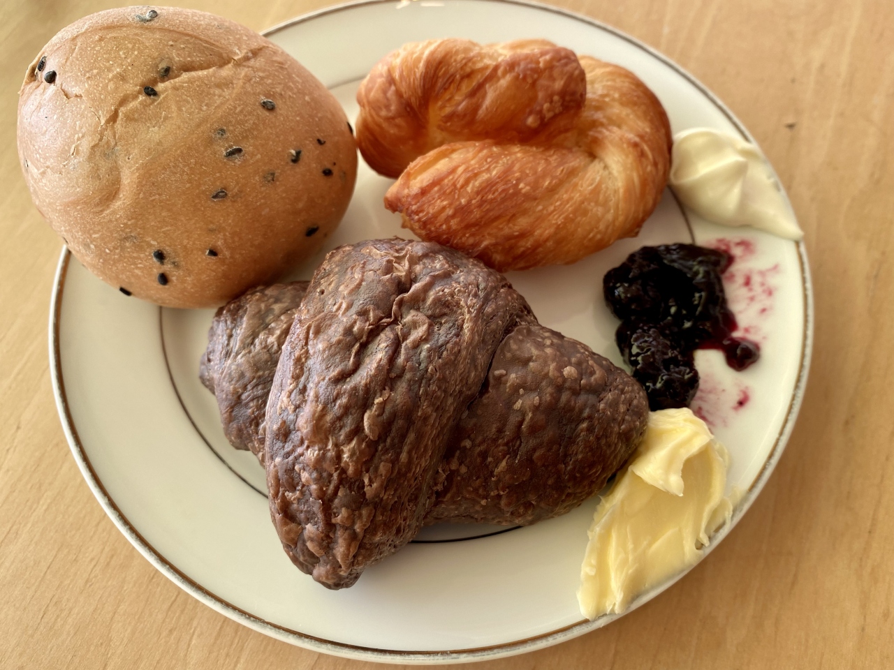 翌朝は雲海が広がり見事でした。朝食は7時からですが、登山に出かける人も多いため、オープン前から行列でした。朝食ブッフェもまずまずの品揃えで、小岩井農場の牛乳、焼きたてパンは人気でしたね。