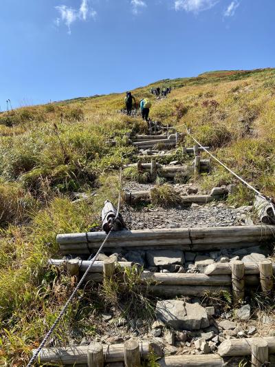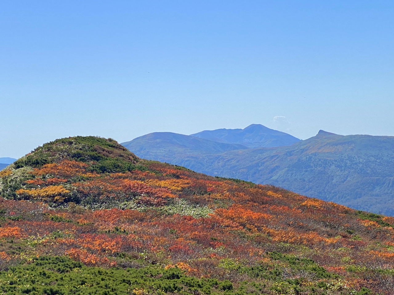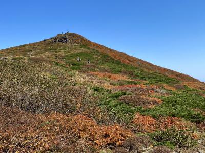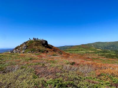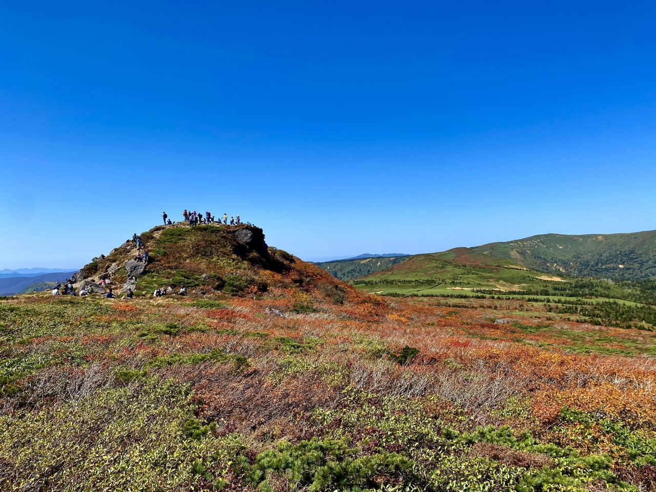 いわかがみ平も既に多くの人がきており、トイレを済ませたら最初に東栗駒山に登り、美しい紅葉のグラデーションを愛でながら栗駒山を目指しました。