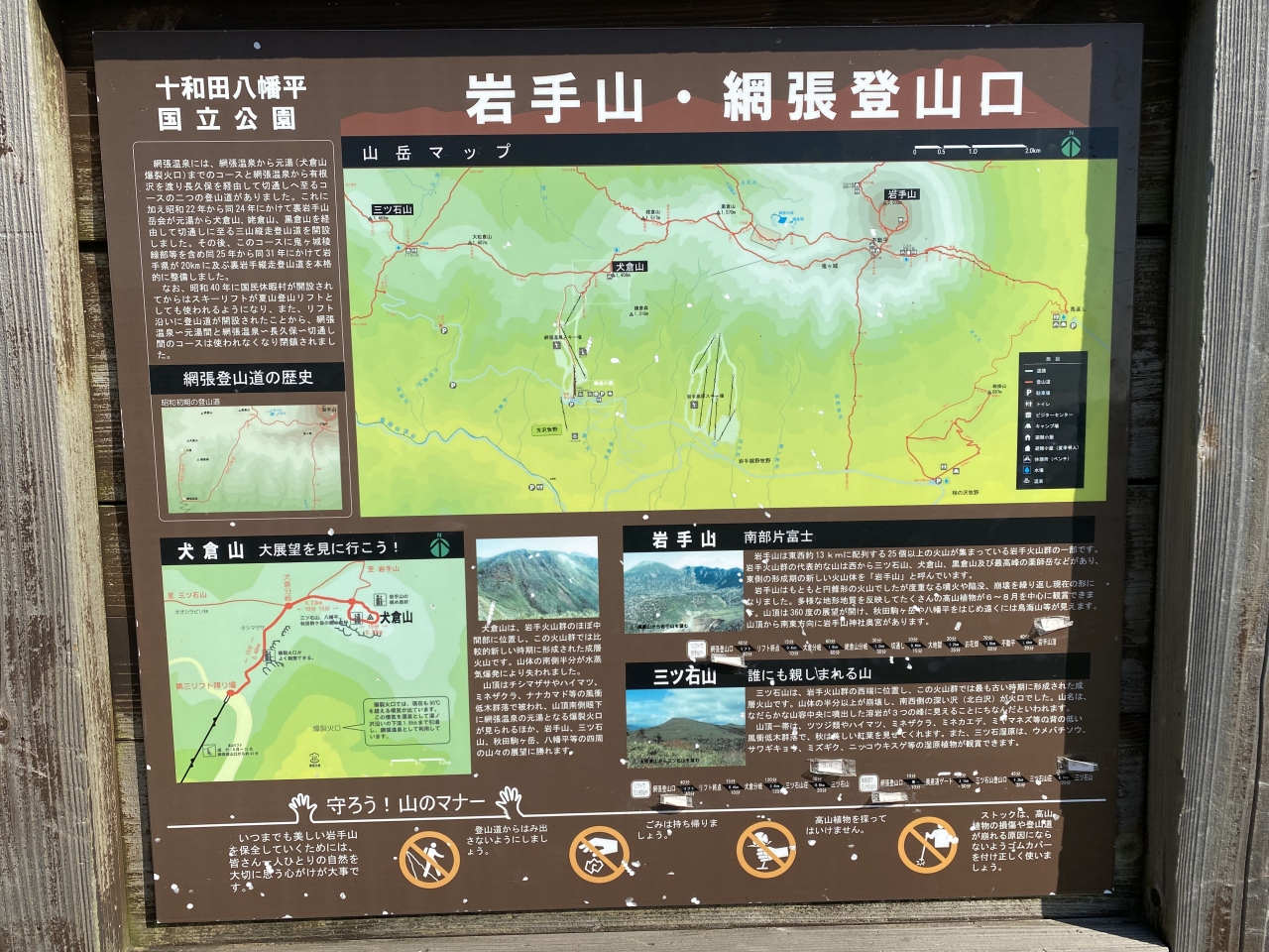 紅葉の名所三ツ石山に一番近いルートで歩くため大松倉ゲート駐車場に8時頃に行くと、既に満車で引き返すようにとのこと。5時半には満車になったとのことで、ホテル滞在者なら朝食抜きじゃないと無理な時間です。
