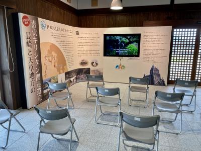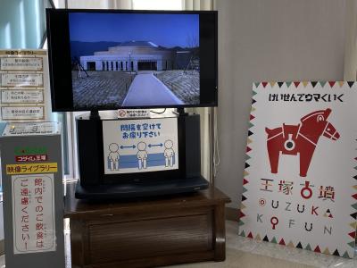 王塚装飾古墳館に入ると、左側に展示物とビデオがあります。こちらは無料です。展示物を見てから、1番と2番のビデオを見て予習しました。中に入るのは有料(大人330円)ですが、石室のレプリカが見たかったので、入らないという選択肢はありません。