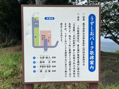 お盆とあって沢山の車が来ていましたが、信号の所の入口がわかりにくく引き返して入りました。少し買物をして裏山へ歩いて登ると「うずしおパーク」があり、黒之瀬戸と呼ばれる海と橋の眺望が素晴らしいです。長島八景の一つであるのも納得でした。先人たちの句碑が4つもありました。海運は交通手段のさいたる物だったでしょうから、うずしおがある海峡を眺めて多くの和歌が歌われたのでしょう。