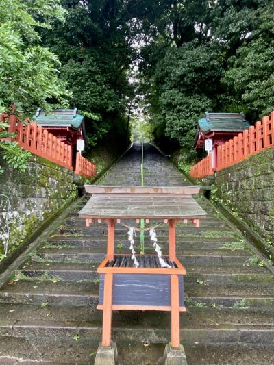 新田神社の裏山(この神亀山の5分の4が陵墓の領域)にある可愛山稜(初代神武天皇の曽祖父:ニニギノミコトのお墓)に参拝するために新田神社を訪れ、300段以上の石段がある参道を登りました。