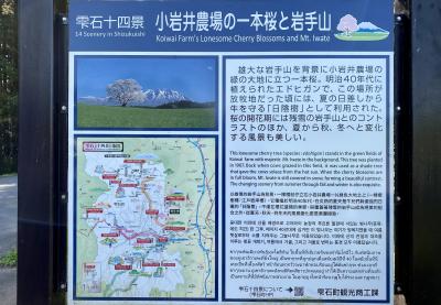 岩手山、一本桜(エドヒガン)と青空を写してみました。青空とのコントラストが綺麗でした。ただ、山の底部が見えないので近づきたかったですが、ロープが張られており立入禁止でした。- 旅行時期