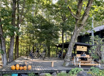 入口すぐ外には牛のベンチ。建物の横の方にはいい感じのテラス席があり、癒しの空間となっていました。隣の建物は物産館のような感じでした。- 旅行時期