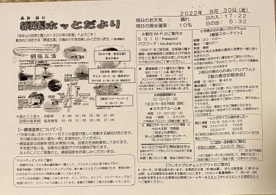 山王山はヤマトタケルノミコトが東国の蝦夷征討に訪れた地で、それにまつわる地に温泉が湧いたようですので、霊験の湯と名付けられていました。十朱幸代さんも来館されたのか、温泉入口横に寄贈されたタペストリーが展示されていました。脱衣所が広くて使い勝手が良かったです。洗い場は8つくらいで、露天風呂も気持ち良かったです。湯上り処には、外にウッドデッキもあり夏場とか気持ちよさそうでした。