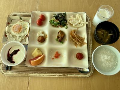 朝食はブッフェ形式で、それなりに品数もありました。当館名物の生姜餅が美味しかったです。