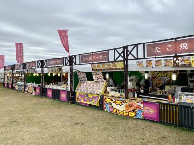 屋台も沢山立ち並んでおり、軽く食事をしたりすることもできます。我家は行くのが早かったので、まだ準備ができていない店が多く、うどん、ソフトクリームだけ食べることができました。