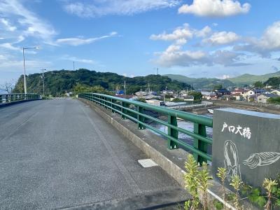駐車場入口横の道を登って行くと戸口大橋を渡ります。山の頂上付近には電波塔、展望台、赤い鳥居が見えています。海岸沿いを奥まで進むと民家が立ち並ぶ地区になり、大榮神社への道標の方向に向かいました。要所には「干潟景勝の地」と書かれた道標があるのでわかりやすいです。民家を過ぎると山道を少しづつ登ります。赤い鳥居が見えたら、まずは大榮稲荷神社(個人で作られた神社)に参拝。