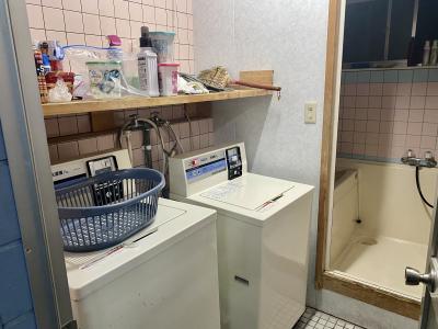 フロントのある本館は大部屋が多いのか ? 家族連れやグループでごった返してました。洗濯機はありましたが乾燥機はわかりませんでした。本館はプレハブみたいな1階建てなので、新館よりさらに隣の音とかは聞こえて来そうな感じでした。自販機(ビール有)は新館にありました。