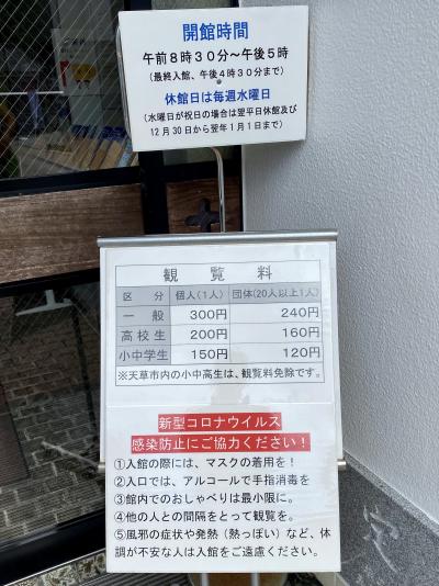 あまり時間がなかったので、約5,000万年前には現在の風景ができた様子などがわかるビデオや展示物などさらっと見てまわり、係員とも少し話をしました。1966年に天草五橋が開通し交通の便が非常に良くなったこと。当時は有料でしたが、すぐに元がとれて無料になったことなどを聞きました。