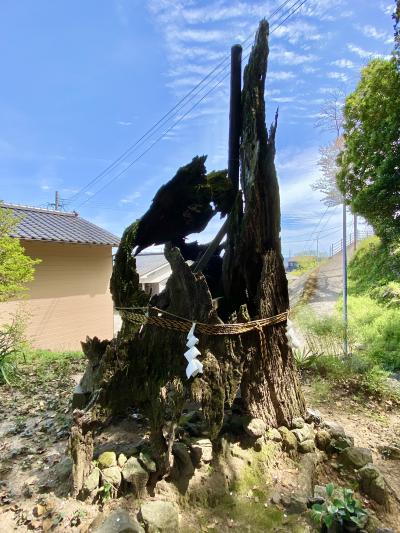 ここで最大の見どころは「神代の楠」。車道を渡って坂を少し降ります。中はスカスカですが、触るとパワーをいただいた感じです。境内の御神木も立派です。