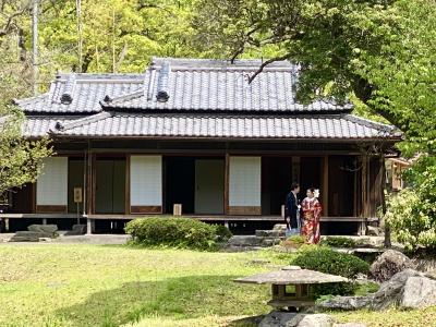 京都のお寺などとすると、こじんまりとした庭園ですが、四季折々の花や木があり、池や茶室などがバランスよく配置されており、良い庭園だと感じました。新婚さんが2組来られていてカメラマンに撮影してもらっていました。