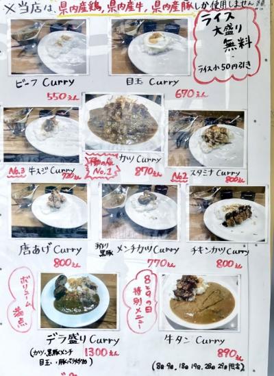 私のお気に入りはカツカレー。時間がかかりますが、揚げたてなので、ころもはサクサクで県内産の肉も美味しいです。家内はメンチカツカレーが好みです。牛すじ出汁のスープは、ちょっとしつこいかな。