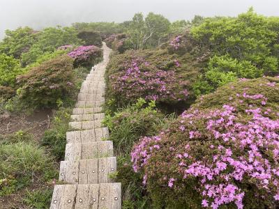 天気予報では全国的に好天の予報で、鹿児島もその予定でしたが、山の天気は変わりやすく、登り始めてすぐにガスがかかり始めたので、周辺の風景は見えなくなりましたが、頂上では一時だけガスの切れ間から下にある大浪池が見えました。
