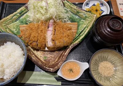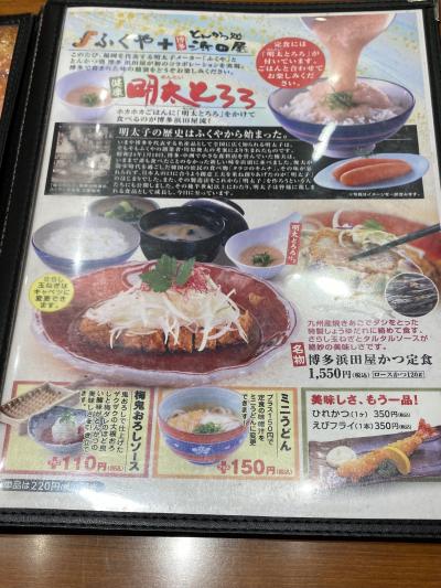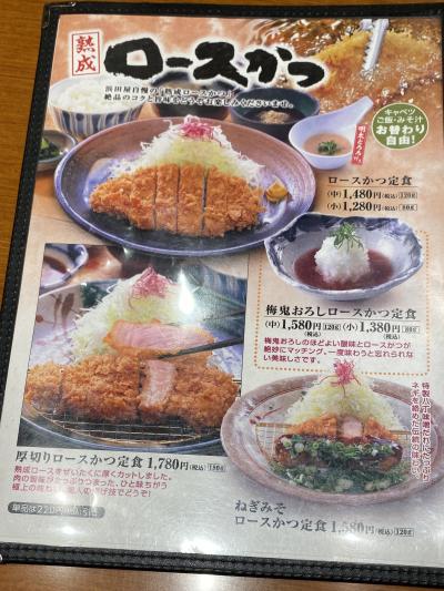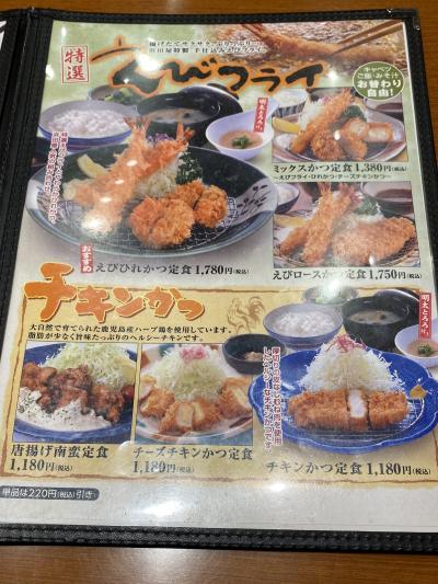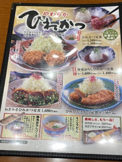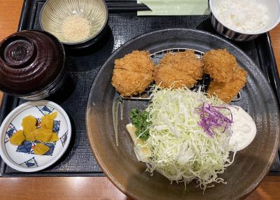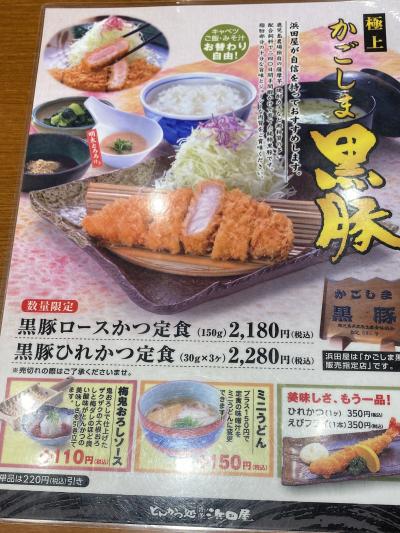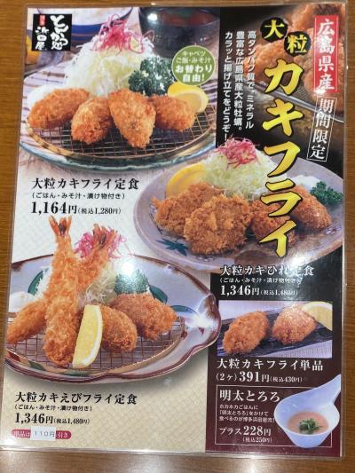 ウィンドウのメニューが色々とあって選択に迷いましたが、家内は季節ものの「大粒カキひれ定食」私は「極上かごしま黒豚ロースかつ定食」にしました。