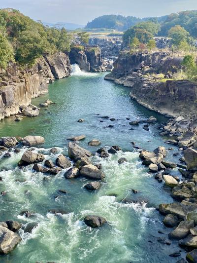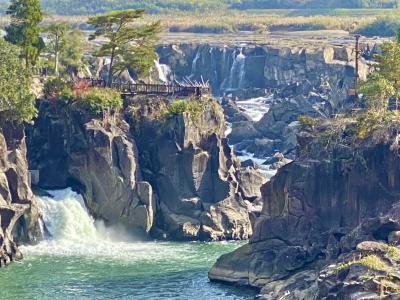 近くの新曽木大橋の所にも駐車場があり、橋の上から眺めると、地殻変動でできた地形であることがよくわかり、素晴らしい眺めです。望遠で写すと「東洋のナイアガラ」感がかもしだされます。