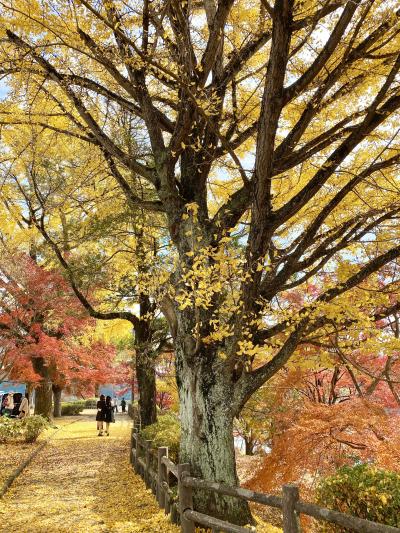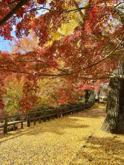当日は日曜日で紅葉とあって、駐車場を出る頃には、道路の本線までつながる大変な行列になっていました。早めに行って正解でした。だいぶ落葉が進みましたが、銀杏の葉が敷き詰められ綺麗でした。