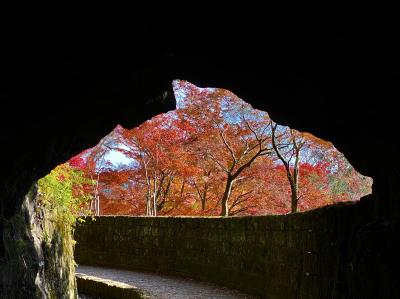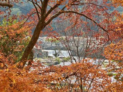 戻って来る時に見える風景は、紅葉を額縁に入れたかのようで美しい。川にくだる道は洪水で崩壊しており、立ち入り禁止でした。