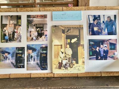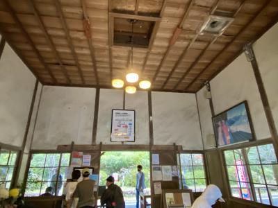 駅舎に入ると高い天井に古風なランプが灯されて、なんともいい雰囲気です。鶴瓶さんの「家族に乾杯」でロケに来られた時の写真もありました。