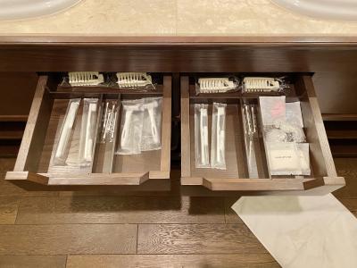 部屋着は上下別で、ガウンは長いタイプでした。クローゼットにセイフティボックスがありました。