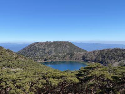 帰路は大浪池方向にくだり、韓国岳避難小屋の近くの分岐から、林のなかを抜けて戻りました。2時間20分かかりました。(標準所要時間は1時間45分)