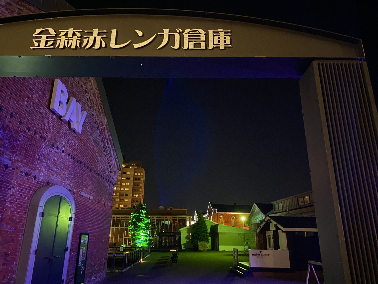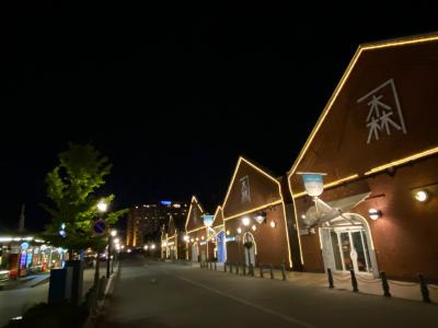 函館山の夜景を見てから、山頂からバスで下山。バスを十時街で下車して、赤レンガ倉庫あたりを散策しました。