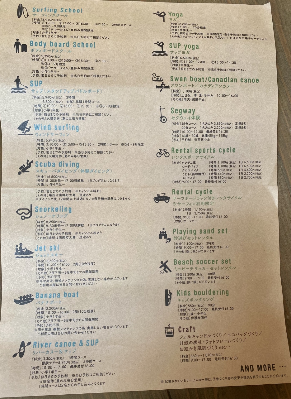 2021.10月現在。昨年までは自己責任でボードを1階のボード置場に置いて帰る事が可能でしたが、今年初めて来たら、置いて帰ったボードがボード置場から消えてました。敷地内のアクティビティセンターで保管してありました。今年からは、宿泊時のみボード置場は使用可能。サーフボード以外は置けません。サーフボードを置いて帰りたい場合は、アクティビティセンターで1ケ月3,300円、1年33,000円で預かってもらえます。