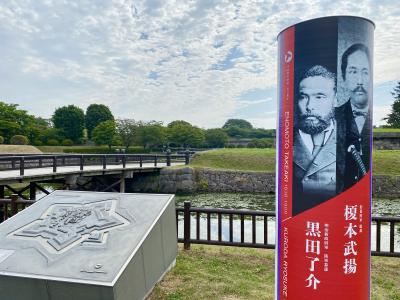 前回訪問時にはなかった、榎本武揚、土方歳三ほかの写真が掲示された説明ポールが複数建っていました。