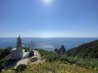 フェリーで上甑島の里港に上陸し、まずは最南端の釣掛崎灯台へ。そこから北上しながら観光スポットを巡り、里町のホテルに行くスケジールにしました。里港を12:45スタート、手打海岸経由で灯台到着は14:00でした。