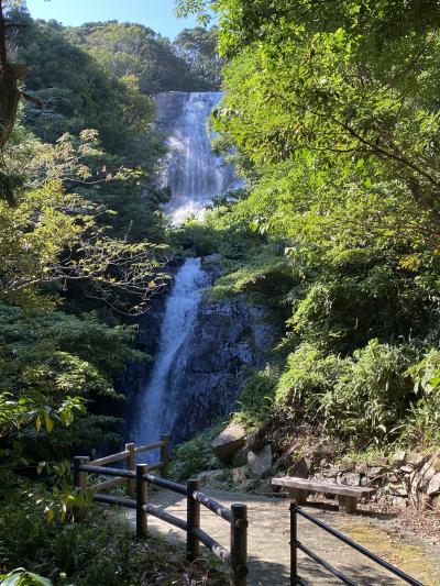 遊歩道からは滝の一部は見えています。遊歩道の途中右側には展望台への階段がありましたが、コロナのせいか ? 崩れたりして危険だからか ? 理由はわかりませんが立入禁止でした。