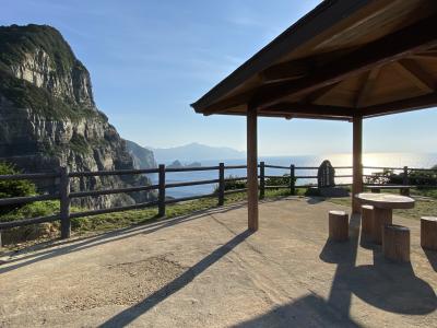 駐車場からなかなかヘビーな階段を登ると、鹿島断崖が目の前に迫る素敵なロケーションの展望所があります。こちらも我が家だけで貸切でした。アクセスをもっとよくすれば、もっともっと人が呼べる場所だと思います。