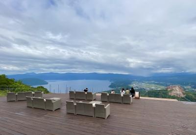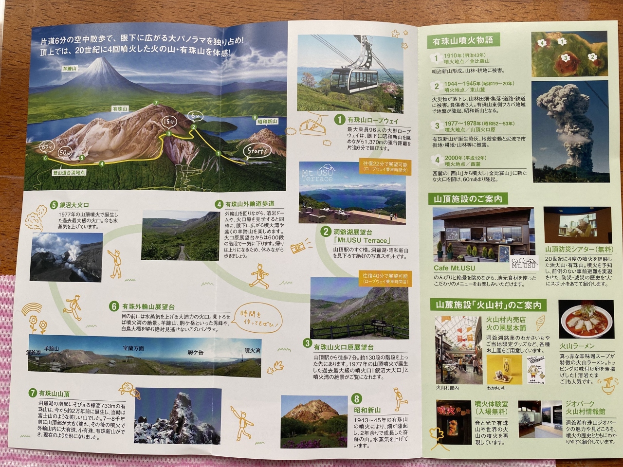 昭和新山が上から眺められます。お洒落なテラスから洞爺湖も見られますが、有珠山が左側の視界を邪魔してますので、全体像を眺めるには、対岸のサイロ展望台からの方が良かったです。