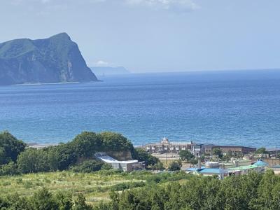 奥まで進むと、別の登口がありました。そこから海側の眺めが良く、フゴッペ洞窟や遠くにはローソク岩も見えました。