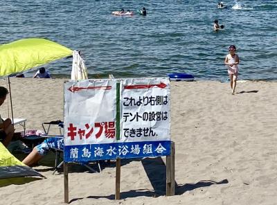北海道旅行中、今年の夏は異常に暑いので、小樽市内観光は断念して海水浴に出かけました。かなり長いビーチのある海水浴場でした。サンダルは小樽駅前ドンキホーテで半額のを買って行きました。