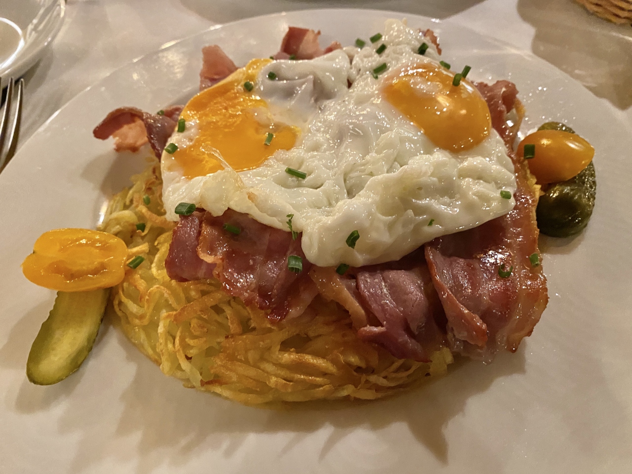 ロシティ&ベーコンの目玉焼きのせは、カリカリに仕上がっていて香ばしく美味しかったです- 旅行時期