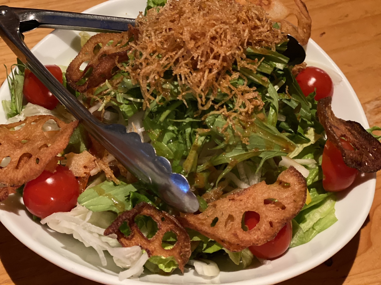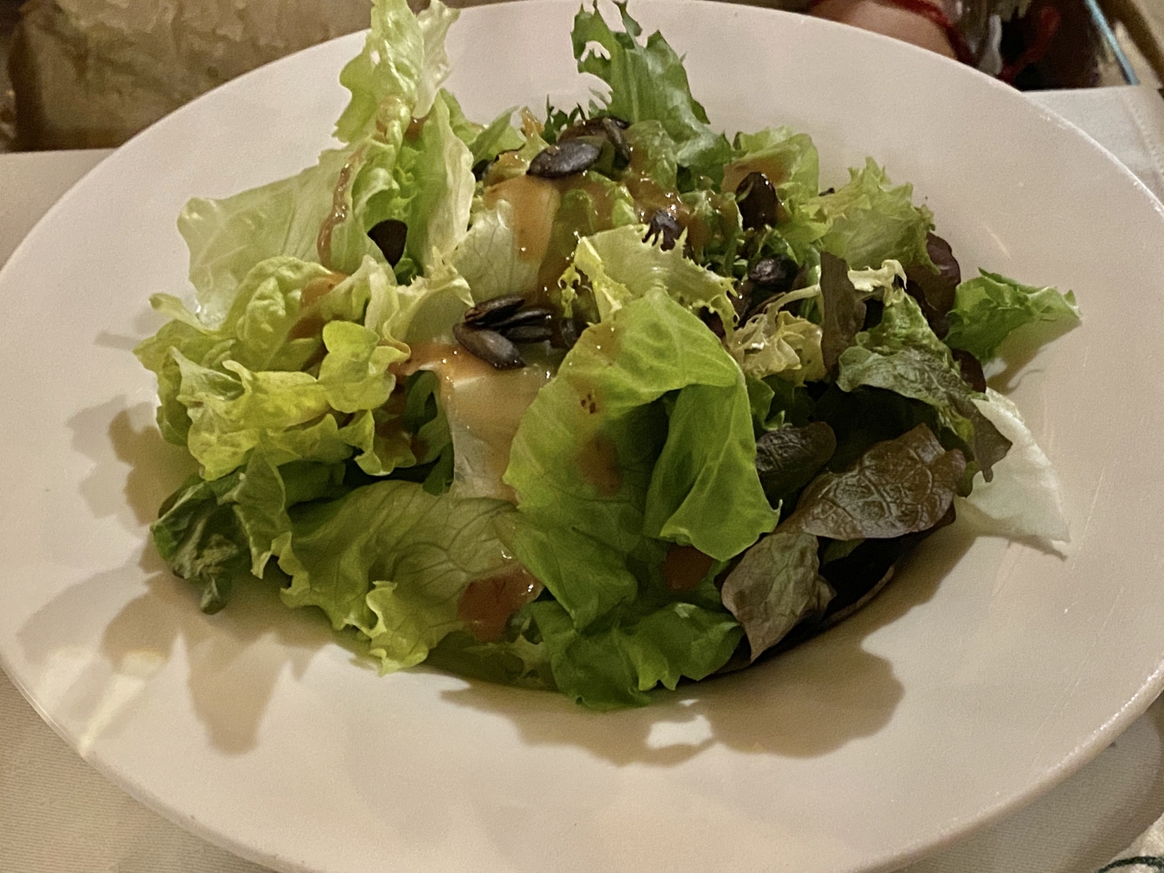野菜サラダは通常サイズだと結構大きめということで、ハーフサイズにしましたが二人では十分でした。