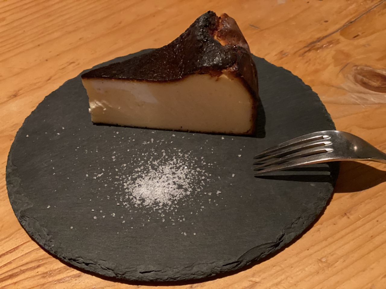 バスクチーズケーキは濃厚で、塩をつけて食べると甘味が増して美味しかったです。このお皿がキンキンに冷やしてあり、居酒屋でこのデザートの出し方はお洒落だな、と思ったら・・・オーナーは横浜の方だそうで・・・納得。