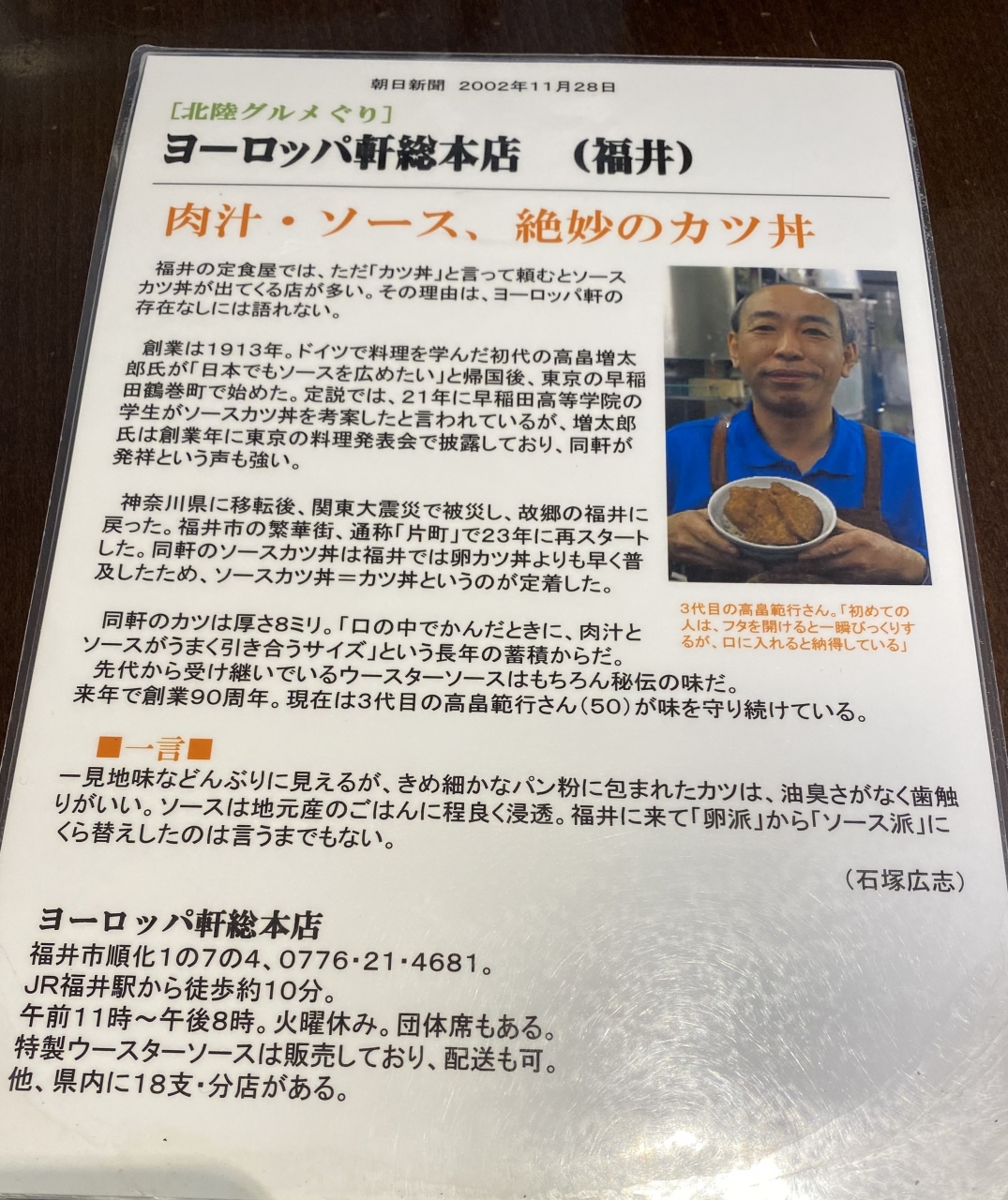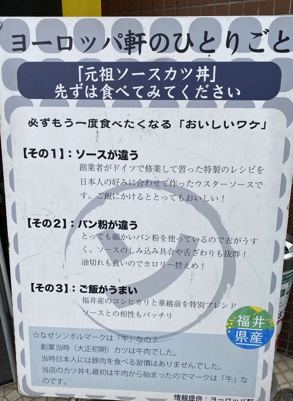 前回、福井駅構内の店で食べたソースカツ丼が美味しくて、思い出すと味まで思いだせるくらいでしたので、今回もそちらの店にはランチで食べに行き、やはり美味しかったです。
