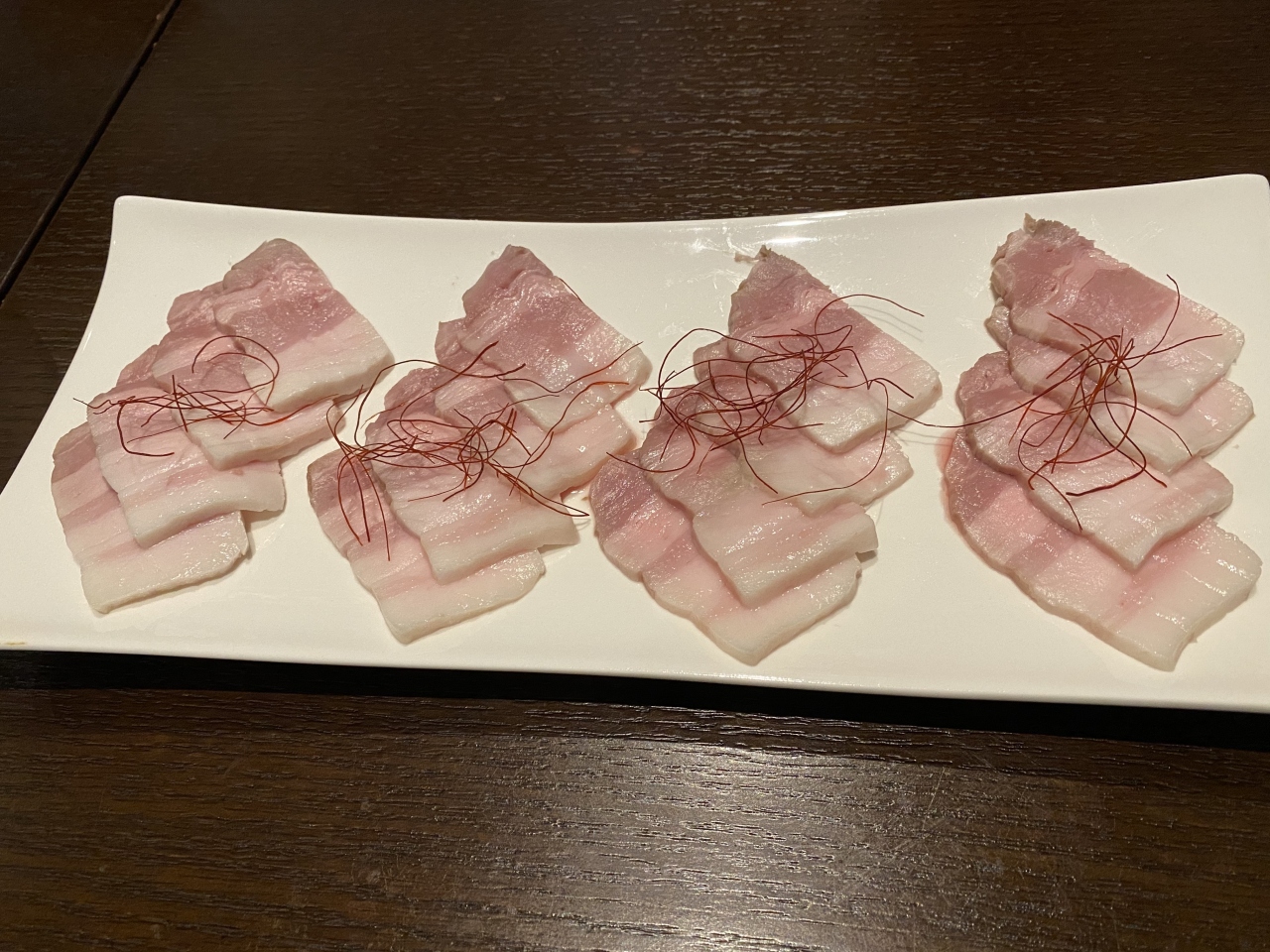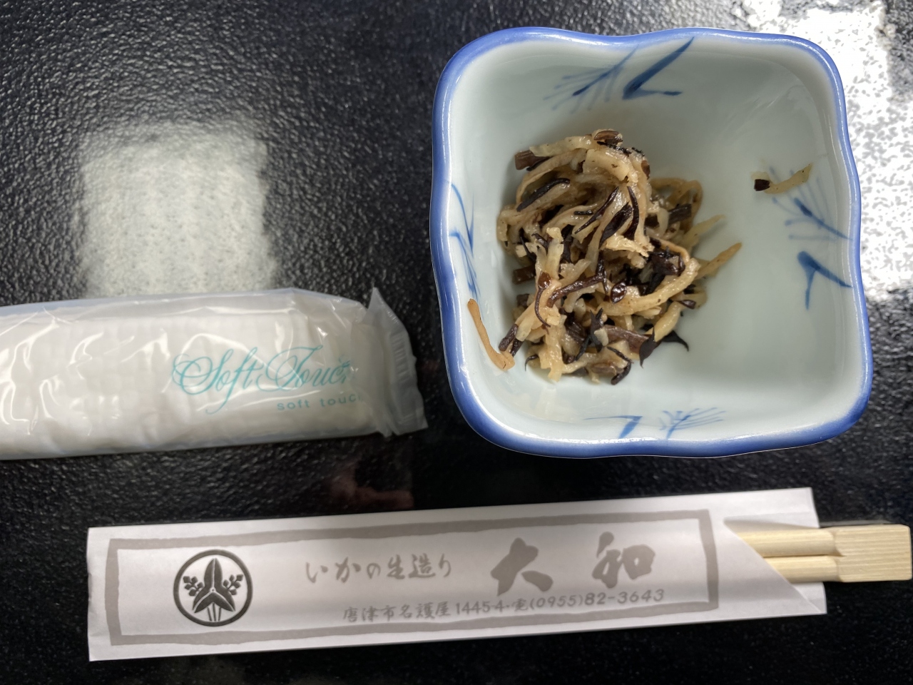 活き造りなので、出てきた時は少しまだ動いてます。なのでコリコリ感はありますが、呼子のイカはモチモチ感は足りないように思うのです。(個人的感想ですが、福岡の生簀料理店や大阪の鮨屋とかで、もっと美味しいのを食べました)