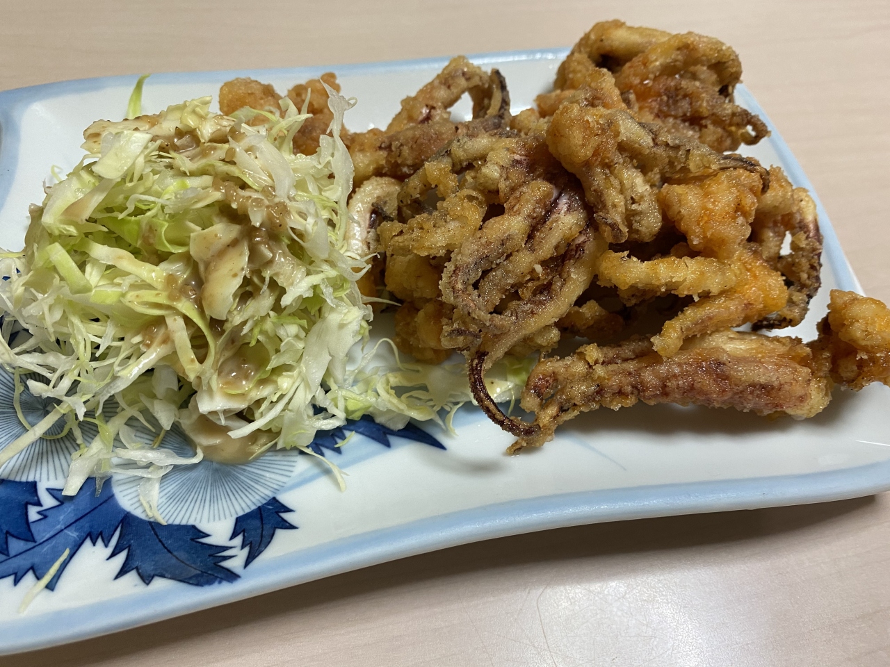 海老の味噌汁は必要ないので、私はイカ活き造り定食、家内はイカ天ぷら定食にしてシェアしました。活き造り定食は最後で目ん玉周囲とか天ぷらにしてくれたので、天ぷら定食にしなくても良かったなぁー。オーダーする時に言ってくれたら良いのにと感じました。