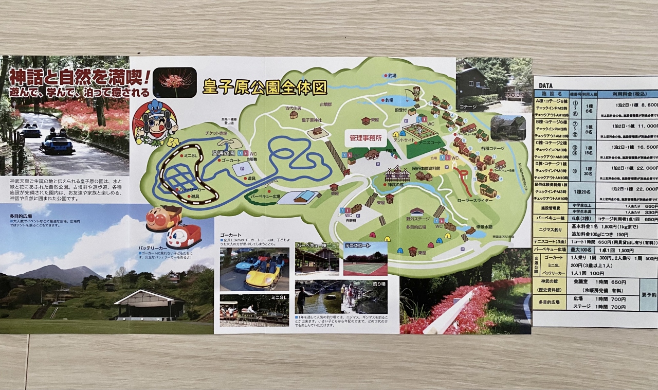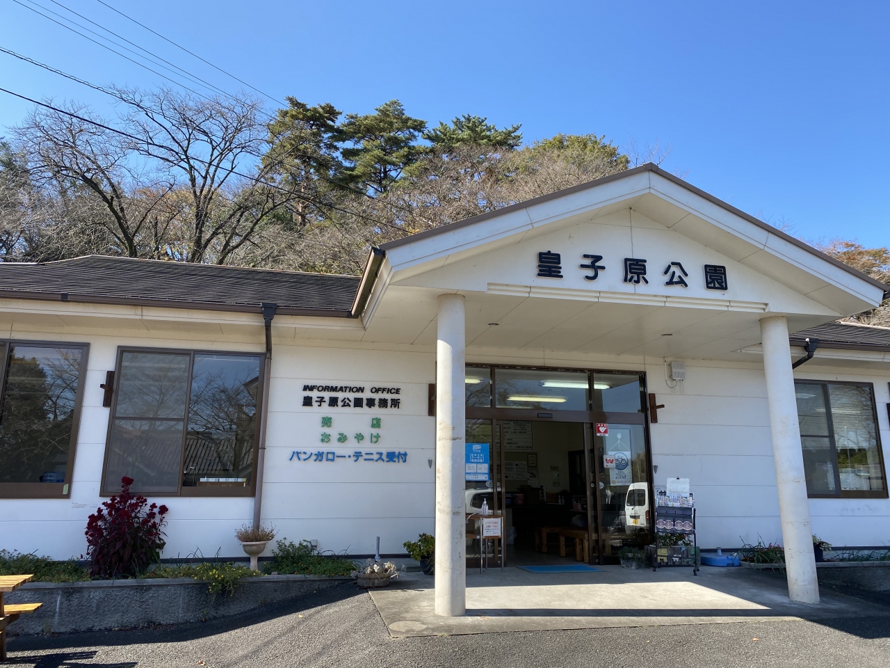 皇子原神社で参拝するために訪れました。広大な敷地に多目的広場、ゴーカート、民族体験資料館、テニスコート、バーベキュー広場、釣り場、ローラースライダー、バンガローなどがあり、11月の三連休初日とあって、多くの家族連れが多目的広場にテントを張ってデイキャンプを楽しんでいました。