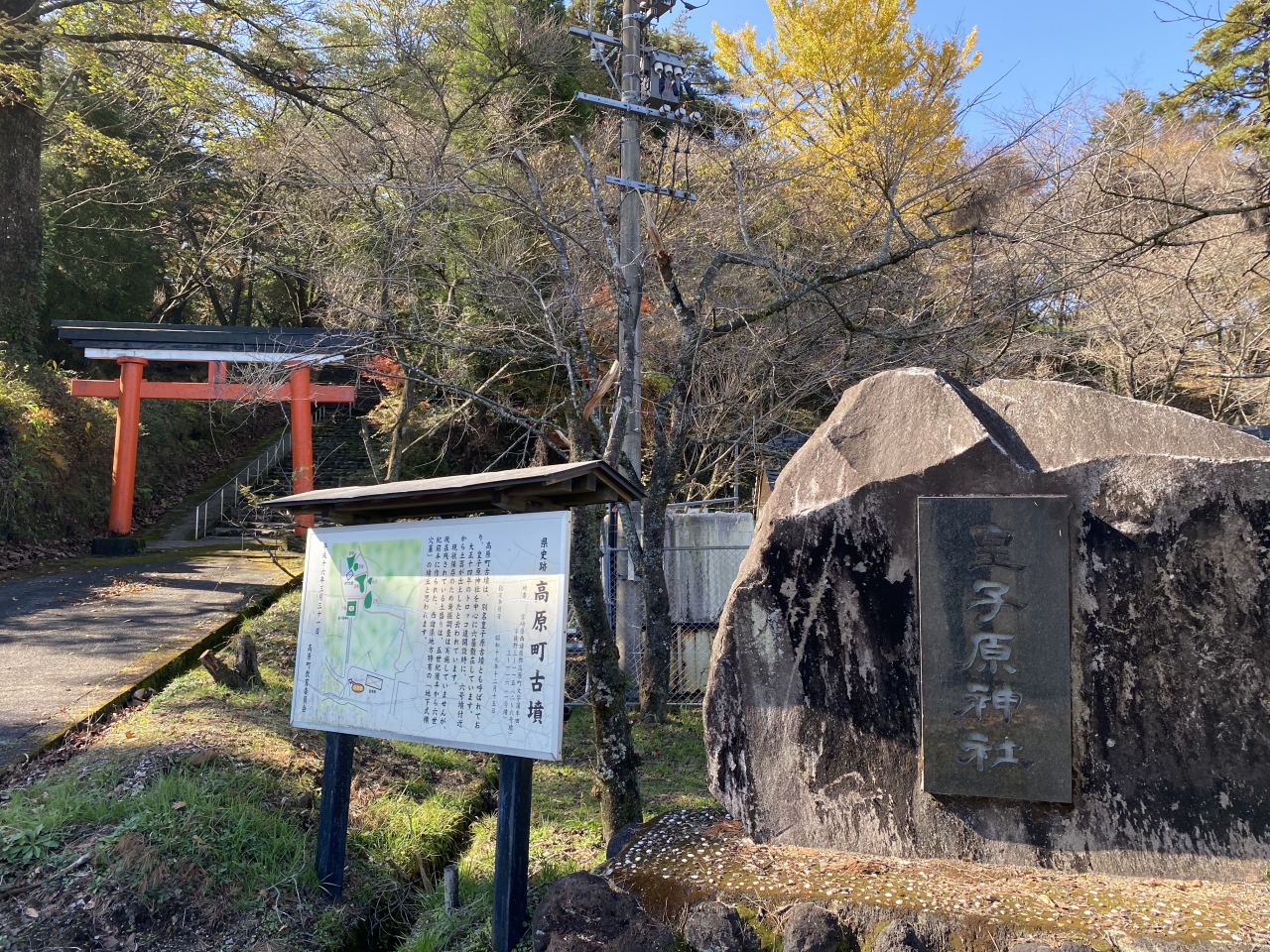 敷地内に由緒のある神社があり、古墳の敷地中に境内があるという感じです。発掘調査をしていないようなので、こんもりと盛り上がっているだけですが。