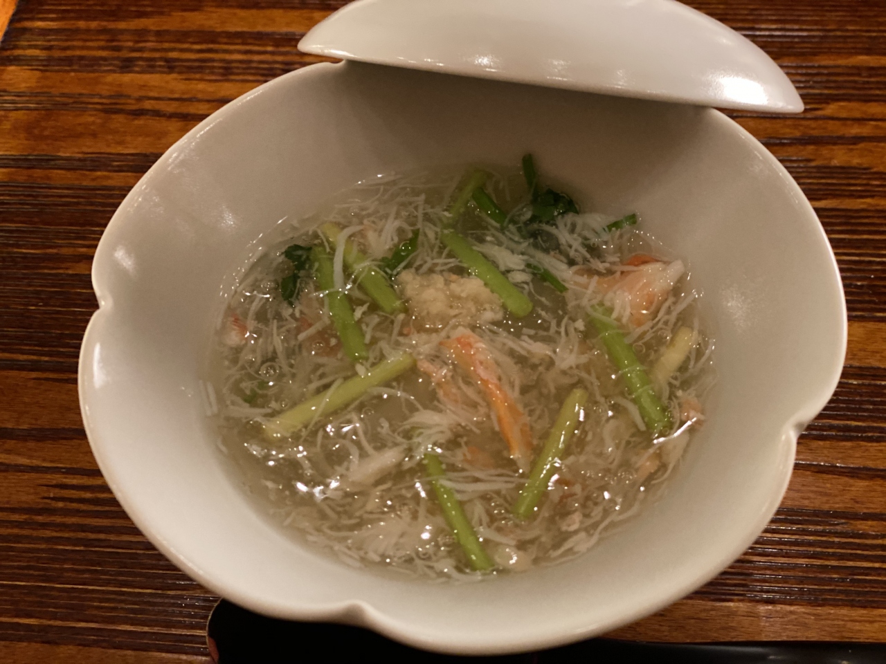 コース料理の締めは、他のコースでは3つの中から一つ選択ですが、おまかせコースでは4つある選択肢を全ていただくことができます。その頃には満腹だったので、今まで食したことがなかった「スッポンと九条葱カレー」にしましたが、和の出汁が効いた美味しいカレーでした。いつも食べる「鯛の黒寿し」は少しだけいただきました。- 旅行時期
