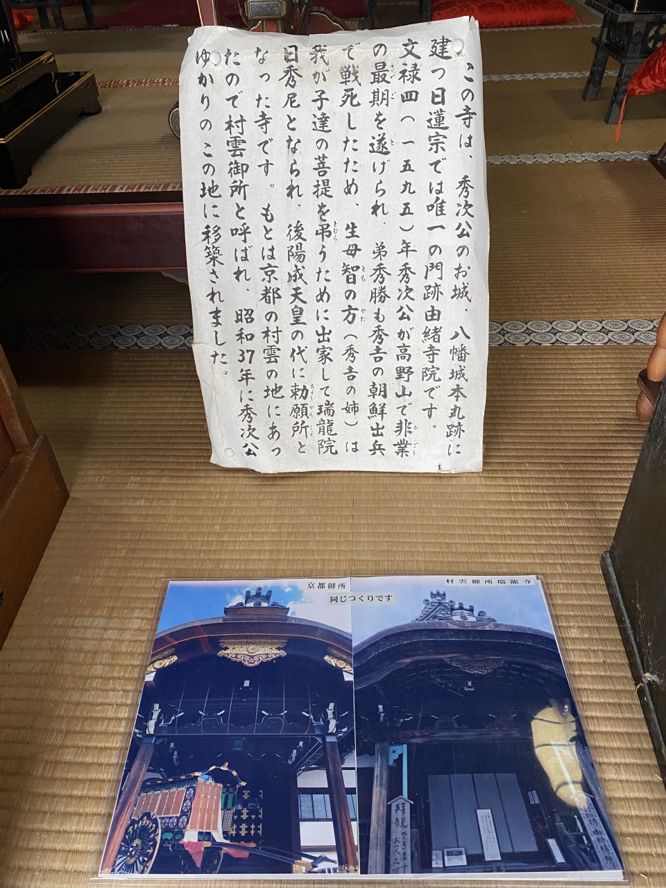 豊臣秀次の居城跡と、悲運な秀次を思う母の気持ちが詰まった村雲御所瑞龍寺を訪れました。紅葉は終わりかけでしたが、戦術の要所だっただけあって、上からの眺めは良かったです。