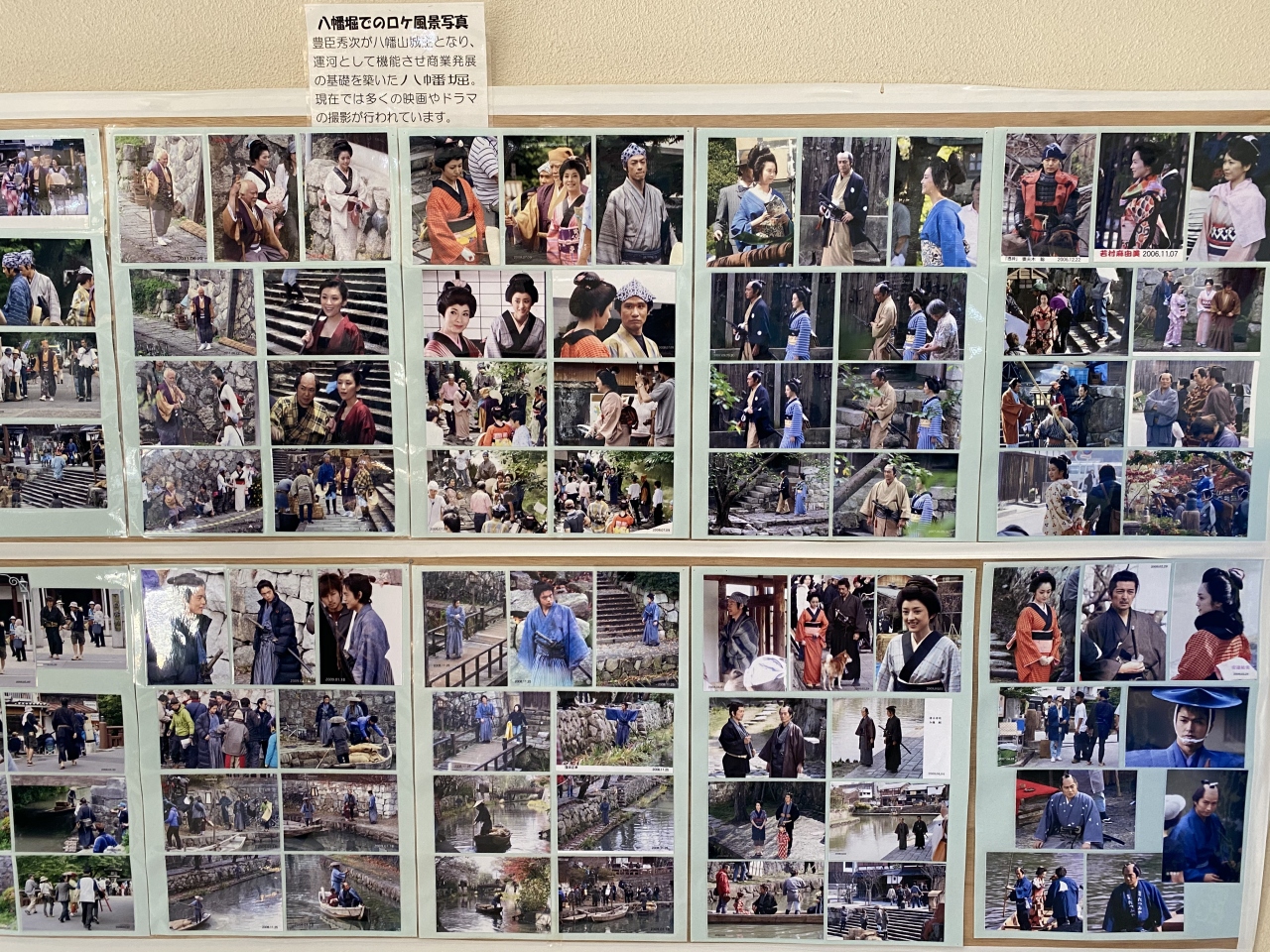 八幡堀がロケに使われたので撮影風景写真や俳優たちの色紙が豊富