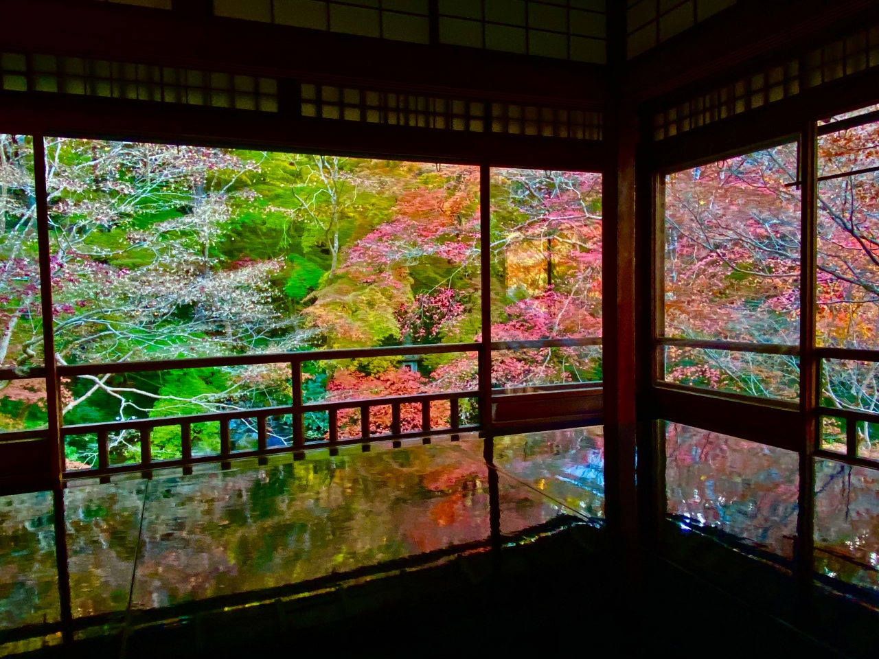 15分刻みの予約なので、思ったほどの混雑はなく、メインの写経机にリフレクショする紅葉はピークは過ぎていましたが、グラデェーションが綺麗でした。- 旅行時期