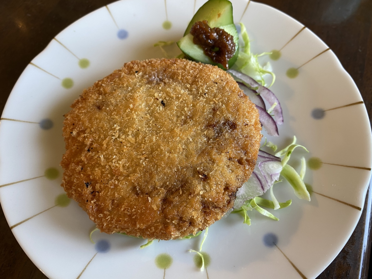 家内はメンチカツにしましたが、挽肉をハンバーグ風に揚げた当店のおすすめと書いてある通り、ジューシーでとても美味しかったです。- 旅行時期