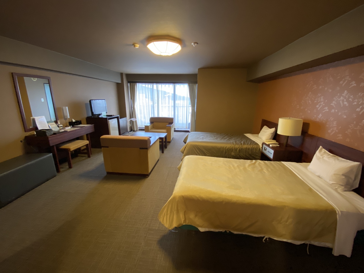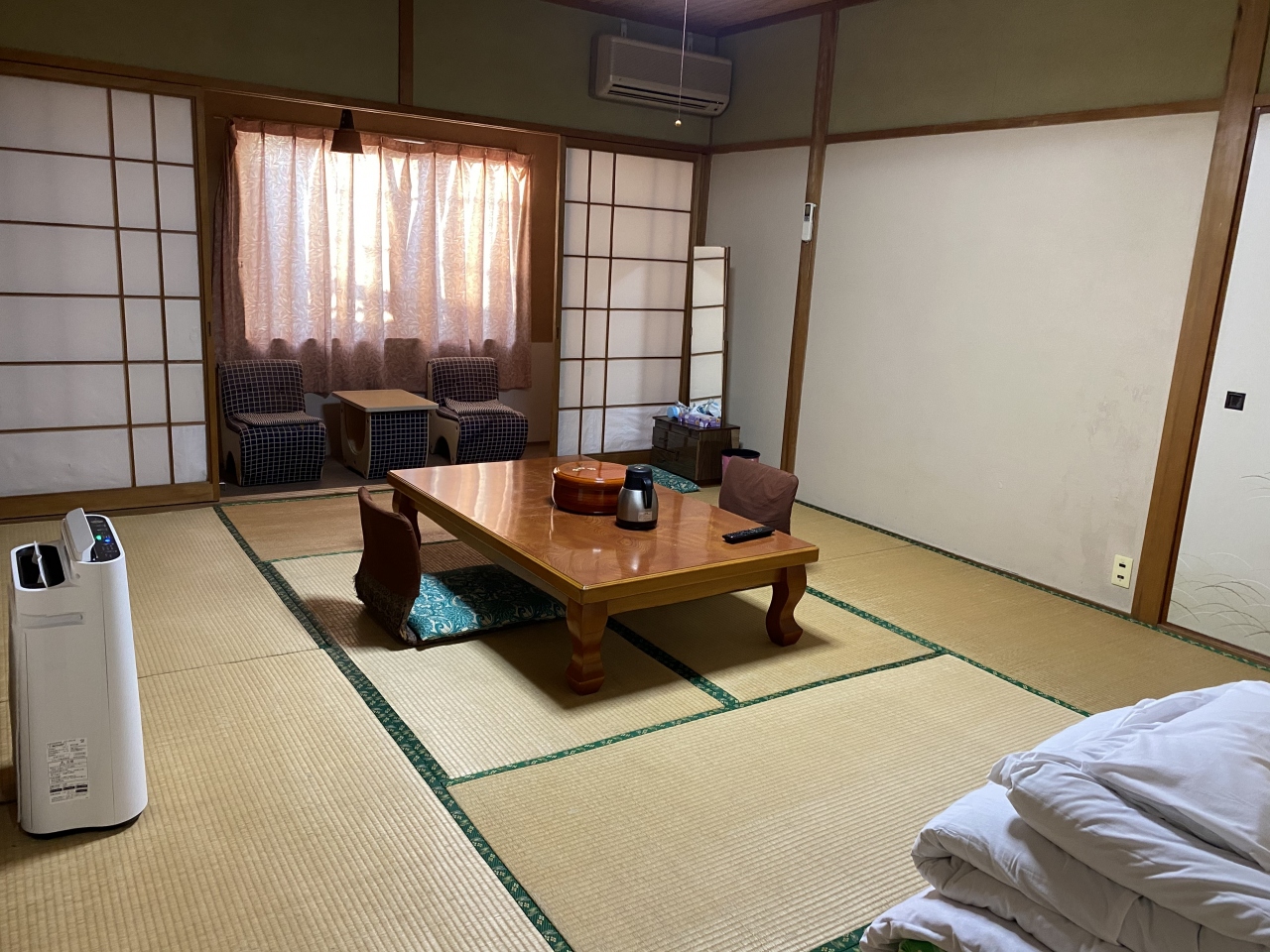 部屋は二人で泊まるには十分広く、昔の旅館ならではの窓側のスペースも障子で仕切ることができます