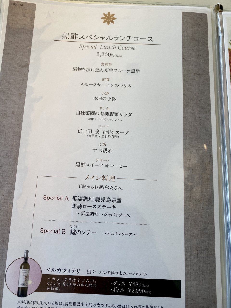 黒酢レストランは日本初らしく、2Fは黒酢を使った料理やデザートが食べられるレストランです。