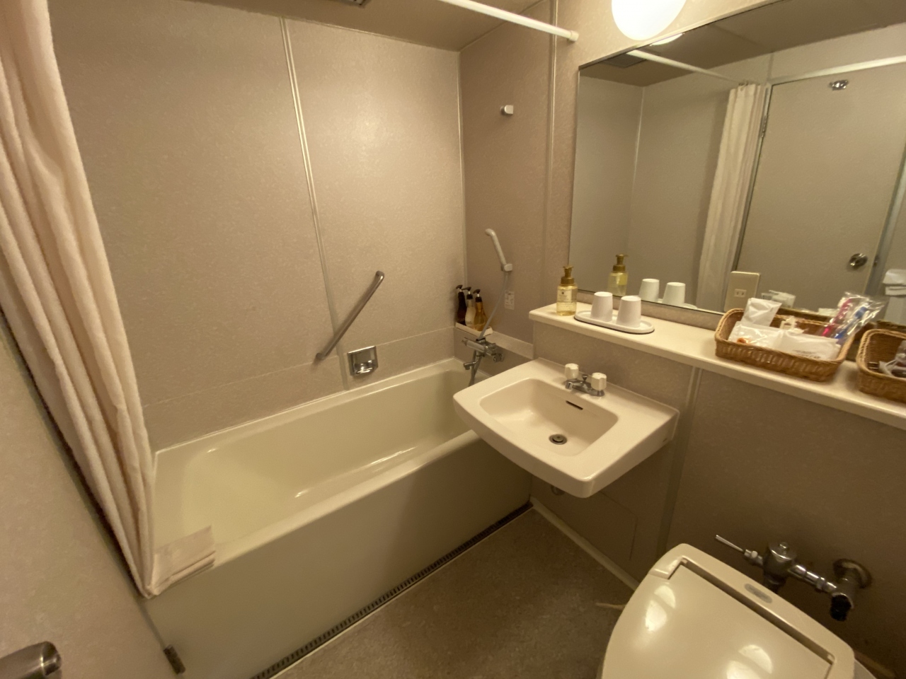 トイレ・バスルームは狭いですが、お風呂は大きなジャングル風呂の温泉に夜、朝入ったので部屋のは使ってません。トイレはウォシュレット付きなので問題なかったです。